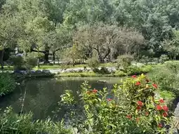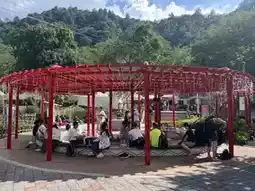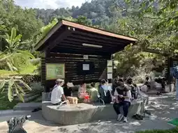 There are two free hot spring foot bath areas here. One is located next to the multi-story parking lot and has a higher water temperature, while the other is in the park near the visitor center, surrounded by greenery and even featuring hot spring fish in the pool.