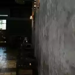 Mottled stone wall and old lanterns at the entrance