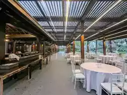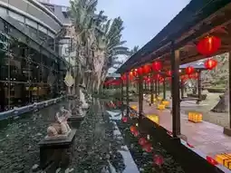 The Queena Plaza Hotel occupies a large area, with a significant portion dedicated to garden landscaping. The tropical island resort-style garden, complete with small bridges and pavilions, exudes a strong Southeast Asian vibe, making it a popular spot for wedding photoshoots and boosting the hotel's wedding banquet business.