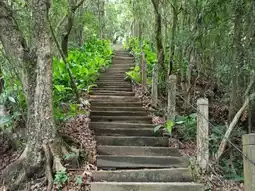Located in the mountainous areas of Nanhua and Nanxi in Tainan, there are many forest trails for hiking. This time, we are taking the 'Yuding Trail,' situated in Beiliao Village of Nanhua. The trail stretches 1.6 kilometers from the Tianyan Temple at the foot of the mountain to the ridge, with approximately 1,470 steps. The entire trail is mostly paved with stone steps and wooden boardwalks, making it quite a leg workout and guaranteed to make you sweat!