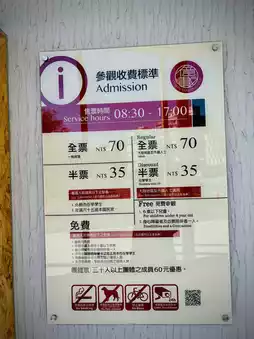 Full ticket: 70 Half ticket: 35 Free for Tainan residents (see picture)