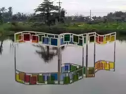 At the entrance of the Taijiang National Park Visitor Center, there are two art installations on the water, one symbolizing the flow of life, and the other with the theme of folding time. The building itself is built in a geometric irregular shape, a bit like the undulating feeling of Taijiang's inland sea. The side rails of the bridge are decorated with oysters representing Taijiang's aquaculture industry, which is very distinctive.