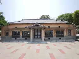 Xinhua Wude Hall is located in the Damujiang Cultural Park in Xinhua City. The exterior structure of the Wude Hall is constructed with black tiles and cypress rain shower boards. The bull's-eye windows on the exterior walls can effectively receive natural light and increase the lighting. In addition, Xinhua Wude Hall also has the only spring wooden floor in Taiwan, which is mainly used to provide a safe protection facility to avoid injuries during judo and kendo sports. The architectural art and craftsmanship that represents Xinhua Wude Hall are composed of three important elements: spring wooden floor, bull's eye windows and cypress rain shower boards. Japan's "Budo" includes traditional martial arts such as Kendo, Judo and Kyudo. In all the Wude Halls in Taiwan, apart from Kendo and Judo displays, Kyudo is rarely seen on display.