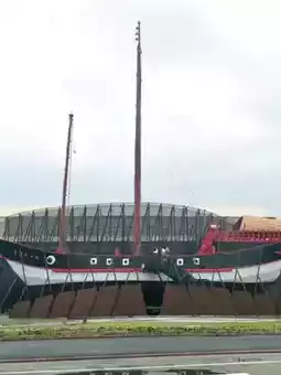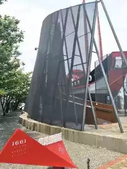 This is a new attraction that just opened on February 28 this year (2019) - the Taiwan Ship Park. The park is not large, but it has a 1:1 replica of an antique wooden sailing ship called the "Taiwan Chenggong". The Taiwan Chenggong is 29.5 meters long, with a mainmast 28 meters high and weighing 300 tonnes. The hull is made entirely of wood. The antique ship is divided into facilities such as time capsule, whale back look back, departure corner, dome trail, port side square, etc. The Taiwan Chenggong was completed in 2011. In the same year, the main mast broke and it was repaired. The repair took a year to complete starting in 2015. In addition to the Taiwan Chenggong, the park also has several areas composed of white container houses, including the S cargo hold, executive cabin, projection cabin, and breastfeeding room. The S cargo hold is where some local souvenirs, drinks and snacks are sold. The executive hold is where the park staff work. The projection hold plays videos introducing the history of Taiwan ships. The breastfeeding room is a place for visiting mothers and children to collect breast milk and change diapers. Standing on the "Taiwan Chenggong", you can overlook Anping Port in front of you and the statue of Lin Mo Niang in Lin Mo Niang Park. There are other attractions nearby such as Gangbin Historical Park, Lin Mo Niang Park, Deyang Naval Park, Yizai Golden City, etc., where tourists can take an intellectual historical journey.