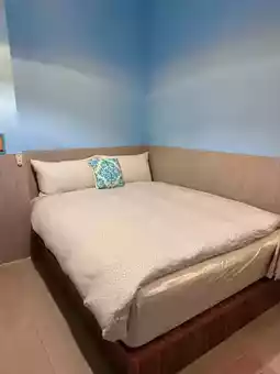 And the room we booked is a large room with 2 separate bedrooms. It can accommodate 4 people and has 1 private bathroom. The room is well-proportioned. There is a sitting area in each room that is very cute. As for the charging plugs in the room, you can use them without using an adapter. It is very convenient and worth the price. On this trip, there were 3 of us. When divided, the accommodation cost no more than 1,300 baht per person/2 nights. It is very worth the price. As for traveling from the accommodation to various attractions in Tainan, we focused more on walking. We could walk from the accommodation and it was not very far. Except if we had to go far out of town, we would take a taxi or bus in some places. But most of the time, we could walk. And there are many delicious restaurants not far from the accommodation. As an option for friends who are going to travel to Tainan, it is very convenient and worth the price.