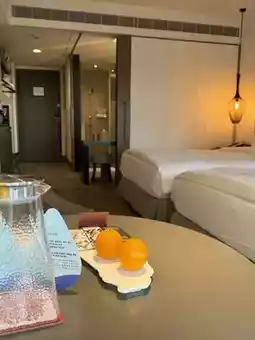 The front desk staff are very friendly, and the check-in process is smooth. While waiting to check in, guests are offered a cup of winter melon tea, which adds a distinct Tainan touch.