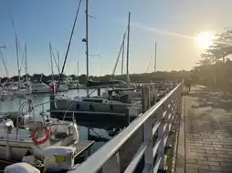 In the distance, the shimmering sea reflects the light, with a few fishing boats quietly anchored, adding a poetic touch to the scene. I wander along the shore, listening to the soft whispers of waves lapping against the rocks, allowing my mood to settle and calm.