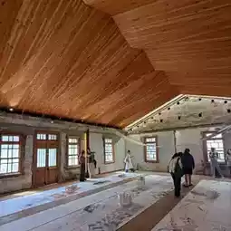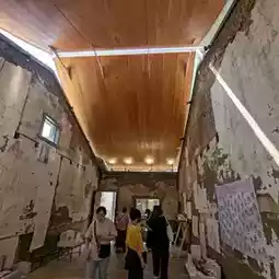 Most historic homes are constructed with brick and mud walls, and their structures appear relatively stable. However, the roof often requires the most attention during restoration. For this residence, wooden boards were used for reinforcement, employing a wave-like embedding technique. The wooden tones, illuminated by natural light, add warmth and a touch of modernity to the overall space.