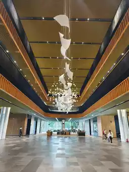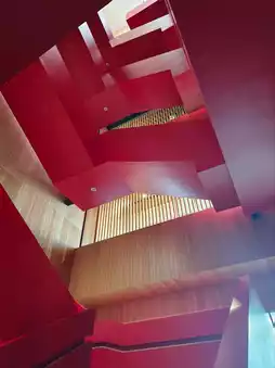 The new main library covers an area of 1.5 hectares, and you can spend a long time just walking around the park lawn outside (it is even more beautiful at night with night lighting)! As soon as you enter the lobby, the famous installation art "Gust of Wind" on the high ceiling will unconsciously attract your attention, and the red staircase in the corner is even more eye-catching!