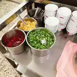 The broth was a bit on the lighter side, and each person received a bowl of Shacha sauce. It wasn't too salty or overpowering. Chili peppers, chopped green onions, and minced garlic were also available at the counter.