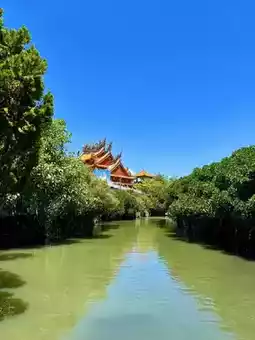 A small boat glides into the Sicao Green Tunnel, where the intertwined branches of mangroves form an archway, and the interplay of light and shadow reflects on the water, as if leading to a fairytale secret realm. Occasionally, an egret flutters by, stirring ripples and breaking the silence with a crisp sound, as if shattering tranquility. The air here carries the salty sea breeze mixed with the earthy aroma, making one unconsciously hold their breath, afraid to disturb this pristine serenity.
