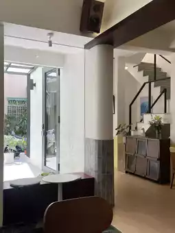 'Django,' with several branches in the East District, opens early in the morning, making it a great spot for an early start to your day. The spacious store features large tables and window-side bar seating evenly arranged, with natural light streaming through the glass windows, creating a comfortable environment for reading or working. While each branch has its own unique atmosphere, the East District locations offer ample seating and simple layouts, making them easy to navigate even for first-time visitors. 😊