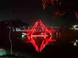 The Yuejin Lantern Festival is held annually during the Lunar New Year in Yanshui District, Tainan City. It is one of Taiwan's most significant artistic lantern festivals. The event takes place along the Yuejin Harbor, featuring light sculptures, artistic lantern installations, and interactive displays. It integrates local history, culture, and the harbor's scenic views to create a romantic and dreamy nighttime atmosphere. The festival includes multiple themed zones, such as water reflection lights, interactive projection art, and traditional lanterns, attracting visitors to take photos and participate. In addition to the light displays, the festival also hosts cultural and creative markets, street performances, and local delicacies, offering visitors an immersive experience of Yanshui's local life and culture. The Yuejin Lantern Festival is not only a grand event for appreciating light art but also promotes local tourism and cultural heritage, showcasing Tainan's unique historical charm and creative energy. It draws a large number of domestic and international visitors each year to enjoy and experience the festivities.