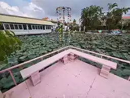 The park's owners have cleverly arranged a curved bridge and art installations around the lotus pond, complemented by blooming flowers such as bougainvillea and dendrobium, creating a picturesque scene known as the "Monet Garden of Taiwan." Adhering to the principle of promoting ecological education, the park offers no admission fee, allowing the public to experience the beauty of the lotus flowers. Jiupin Lotus Park has successfully expanded its lotus industry from agriculture (a primary industry) to catering, cultural and creative industries, and technology (a secondary industry), offering visitors a rich variety of experiences: