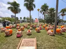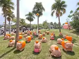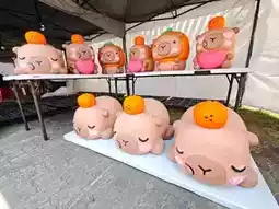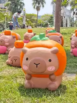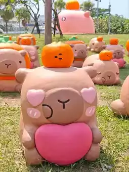 In addition to the giant inflatable puppets, over 50 exquisitely crafted and adorable Kirby and Panda paper sculptures are quietly roaming the park. These mini capybaras are transformed into three limited-edition designs: