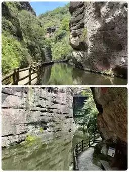 ❗️"Miniature Water Danxia Pearl" with stunning Chibi cliff reflections🏞️|Thrilling 1km bamboo raft ride through water canyon🚣♂️|China's first immersive canyon night tour light show🎆|Wild red-bean yew and silver pheasant ecological paradise🌳|Dinosaur footprint fossils on cliff walls🦖