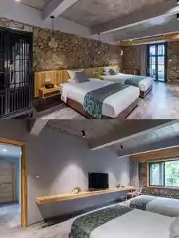 My Taining adventure began at a homestay named "Floral Hotel·Luxury Shengjing," a place as poetic in its name as it is breathtaking in its environment and service. Nestled among rolling mountains and lush greenery, the homestay greets guests with the melodious chorus of birds at dawn, as if placing you at the heart of nature. The entire property is a renovated state-owned coal mine from the 1970s, retaining its original stone elements and featuring a massive natural spring-water pool—perfect for summer. Every detail reflects the owner's pursuit of beauty and care for guests.