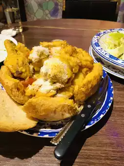 During this visit to Taipa, indulging in authentic Portuguese flavors was a must! Their signature curry chicken bread 🥯 is rich and flavorful, with tender chicken and bread soaked in the essence of the curry. The stir-fried greens 🥬 are simple yet delicious, bursting with wok hei, while the fresh salad 🥒🍋 provides a refreshing balance to the rich main dishes. The biggest surprise was the Portuguese seafood fried rice 🍚, packed with fresh shrimp 🦐, clams, and squid 🦑, with every grain of rice infused with the savory juices—an explosion of flavor! Although the restaurant has limited seating 🤨, the lively atmosphere adds a cozy touch, making you feel like you're dining in a small Lisbon eatery. If you're craving authentic Portuguese cuisine, this place is highly recommended! 👍👍👍 Be sure to book a table 🤨 as waiting times during peak hours can be up to an hour 🧐.