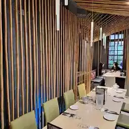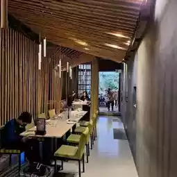 This restaurant has a unique and artistic vibe, offering creative dishes made with mullet roe, a traditional delicacy typically served during the Lunar New Year. The outdoor area features a Japanese-style garden, complemented by reindeer decorations for the Christmas season.