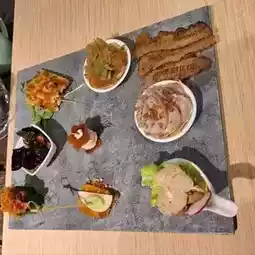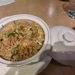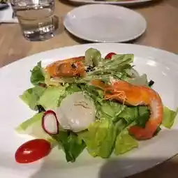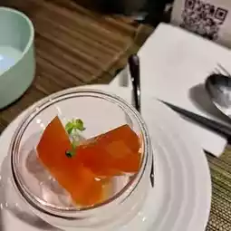 The menu includes both set meals and à la carte options, though the prices are on the higher side. On this visit, I tried a set meal priced at NT$880 per person, plus a 10% service charge. The food was delicious and portions were generous. The salad came with two shrimp, dressed with an orange juice and cheese sauce, which I personally found a bit too sweet. The appetizers included tasty mullet roe cassava, jellyfish skin, and other items. The mullet roe was not just a garnish; the portion was quite substantial. For soup, I chose the fish soup, which was incredibly flavorful with scallops and leek layers adding depth to the aroma. However, I felt the fish was slightly overcooked, making the texture a bit tough. The highlight was the fried rice, with options like mullet roe fried rice, scallop fried rice, and sakura shrimp fried rice. The wok hei (breath of the wok) was strong, making it very tasty. If you enjoy spicy food, I highly recommend asking the staff for their scallop chili sauce. Desserts included taro paste, mullet roe Russian candy (which was amazing), and osmanthus jelly. For drinks, I ordered coffee, which was a bit too mild for my taste.