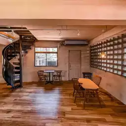 The upper floor is designed with light wood and the ceiling is high and bright🤩