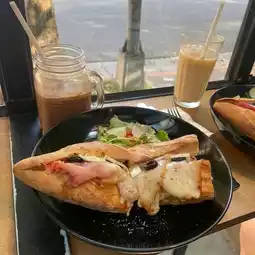 The walled tiles adds colors to this combination. Service staff are polite, welcoming and engaging. Coffee is good, desserts and toast bread are delicious. Take note dine in uptown 90 mins. Seating are available downstairs and upstairs. Its an insta place.
