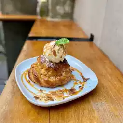 Great place with lots of coffee choices, desserts and savories. My taste in music. Good place to sit and do your work or chat. It's not too pricey considered they let you sit pretty much as long as you want.