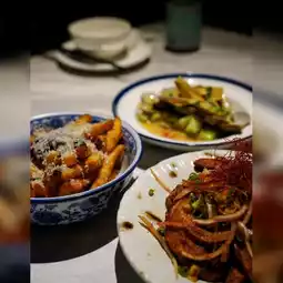 And their food can be said to be a combination of Chinese and Western, I have tried several of them ~ truffle fries are definitely a must-order choice for my sister and friends, because we are all fries control 🤣 As it turns out, simple food can test the strength of the restaurant ~ French fries are very crispy and not greasy, ingredients truffles must eat really satisfied 😋 Then also tried his loofah fried clams, Silk gourd is sweet, clams are very fresh, more importantly no sand, very fresh 👍🏿 Mexican spicy chicken wings will really spicy to burst fire, but maybe because my sister rarely eat spicy, but chicken wings are juicy 🤤 and dumplings are a surprise, because this thing rarely do wine dishes, but they are made very tasty, can be said to be thin skin and filling 😍
