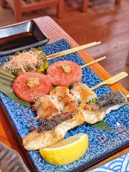 The sushi selection includes salmon, salmon roe, cuttlefish, toro, and pond fish. The toro melts in your mouth with a rich, satisfying taste. The cuttlefish paired with a bit of charcoal salt brings out its freshness, offering a crunchy and chewy texture. The pond fish is served with ginger and scallions, making it quite appetizing.