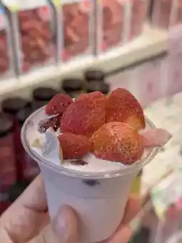 Tried the strawberry ice cream smoothie shake, which was topped with dried strawberries. Though the serving was small, the flavor was anything but. Made purely with fresh strawberries and milk, the drink had no artificial flavorings or added sweeteners, allowing the natural sweetness and tartness of the fruit to shine. The smoothie itself was creamy and velvety, while the dried strawberries on top added a satisfying chew, enhancing both the taste and texture.