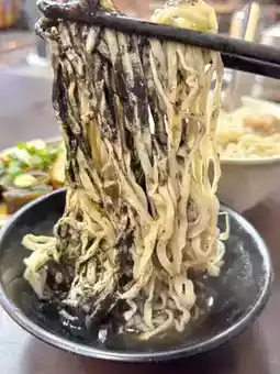 The real standout, however, is their Black Sesame Pasta Noodle (黑芝麻意麵), a dry-style specialty that arrives at the table unmixed—just plain white noodles topped with a mountain of bean sprouts. The magic happens when you stir it with your chopsticks—the entire bowl turns a rich, deep black from the thick, nutty black sesame sauce. It’s a bold, aromatic dish with an intensely earthy sesame flavor, making for an interesting yet acquired taste. Diners can customize it with free condiments available at the table, adding an extra layer of spice or tang. Though not for everyone, many locals swear by it and return time and again.