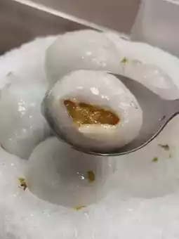 The presentation of the cold tangyuan is visually striking, as the hot dumplings release steam when they meet the cold ice, adding an extra sensory element to the experience. The tangyuan themselves are notably chewy and bouncy, with a QQ texture that sets them apart from other versions. Made fresh in-house and never frozen, the dumplings’ texture and taste are a key part of their appeal.