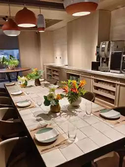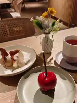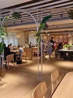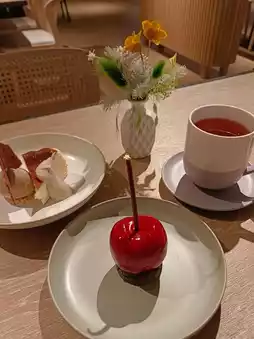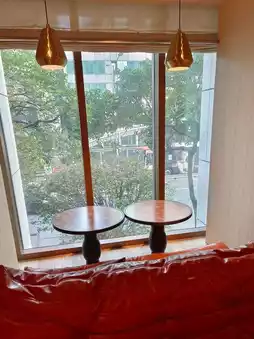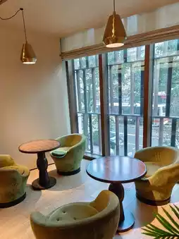The seating is designed with sofas and dining tables. The distance between the seats is far enough, and the dining atmosphere is very good.