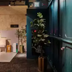 The lobby and guest rooms are decorated with safes, gold bullion motifs, and metallic decorations, giving a unique feeling as if you are staying in a financial history.
