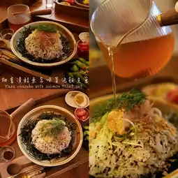 For the food, we ordered the Left Western Garlic Cheese Black Healing Curry Set, Tang Sin Cheese Spicy Chicken Black Heal Curry Set and Grapefruit Marinated Salmon Flavor Tea Bubble Rice Set. The first two have been eaten before, one is plant five-spicy vegetarian, one is spicy set meal; and tea bubble rice is a new dish, grapefruit flavor with salmon is a new combination for me, wet is quite appetizing😋