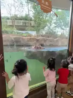 Next, we came to the camel area, watching these 'ships of the desert' stroll around leisurely was interesting and unique. Along the way, we also saw the majestic hippos, floating freely in the water and occasionally lifting their heads to breathe, which was very cute.