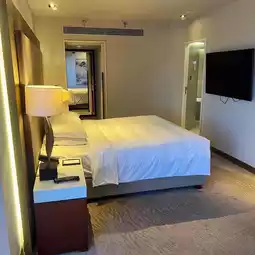 🛏The hotel has a total of 856 high-end guest rooms, with a single room area starting from 40 square meters, which is quite spacious. Each room has a floor-to-ceiling window, through which you can overlook the city scenery. The room is fully equipped, the bathroom is designed with dry and wet separation, and there is a large bathtub🛁. When you are tired after walking outside, come back and take a bath to relax your muscles and bones. What a happy day!
