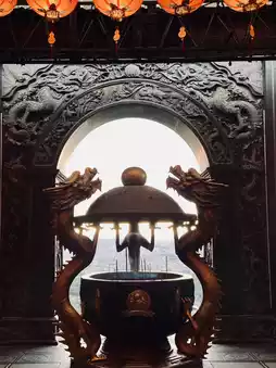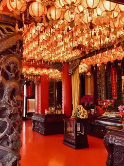 The Lingxiao Hall at Zhishan Temple is the highest of the four halls, enshrining various deities and ancestors. Inside the hall, there is a Tai Sui Hall with sixty Tai Sui gods in solemn and majestic postures. Devotees can light Tai Sui lamps, Bright lamps, and Wealth lamps to pray for blessings.