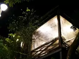 There are both outdoor and indoor seats. The outdoor seats are made of plastic sheds.