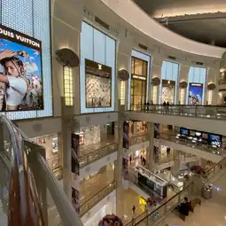 The food court on the lower level, however, presents a different scene. It's bustling with people, with long queues at various food stalls. It seems that the love for food among Asians is always high.