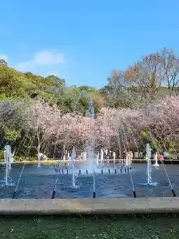 Sitting by the fountain and taking photos with the surrounding cherry blossoms and fountains is really beautiful! !