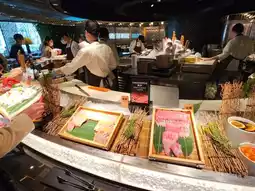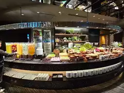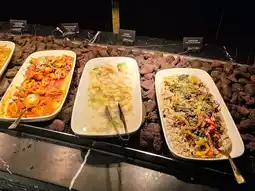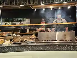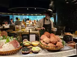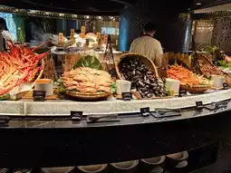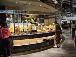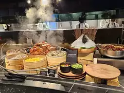 * Cooked Food Bar: A variety of dishes including noodles, steaks, Western food, Chinese food, and dim sum. The taste is average, but it's nice to try a bit of everything.
