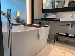 The room I stayed in was a mountain view deluxe room with a view. The 31-square-meter space isn't large, but it's exquisitely decorated with attention to detail. The soundproofing is good, there's a large bathtub, and the best part is the view from the window, overlooking the entire Shilin Residence.