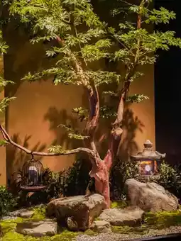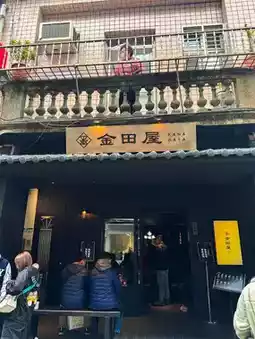 #金田屋 is located on Chifeng Street in Datong District. The dark wooden walls and gray tile eaves are very eye-catching. There are also display cabinets where desserts are suspended in the air and rotate and float, which looks very dreamy.