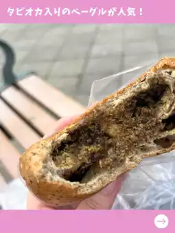 Above all, the brown sugar tapioca milk tea flavor bagel is very delicious, as it is popular. The bagel contains something like a milk tea paste with brown sugar tapioca grains, which is slightly sweet and the best. It went well with the chewy dough, and it was a big hit!