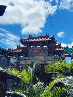 This is like a temple in Taiwan. It was amazing to see such a large temple in the middle of the city, and it was a healing trip to see the huge waterfall flowing inside.