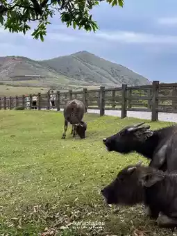 Another highlight is that there are buffaloes living in various corners of the field, quietly eating grass, making us feel like we are really in the middle of nature. It's suitable for those who want to escape the city, breathe in the fresh air, take pictures, or just sit and look at the view. It's awesome.