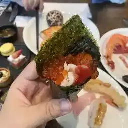 🥂 The buffet line includes dumplings, steamed buns, dim sum, steamed crabs, noodle stations, Chinese-style hot soups, various Japanese miso soups, sushi, sashimi, maki, seafood on ice, shrimp, crab legs, and oysters.