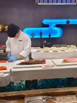 Only desserts and fruits are convenient. If you want to go to the door, the bartending, fresh food and fried grill areas are quite far away.