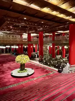 Stepping into the Grand Hotel Taipei feels like walking into the trajectory of Taiwan's modern history. This majestic palace-style building stands on a hillside, with its red pillars, flying eaves, and golden dragons, often remembered as "the most palace-like place in Taipei." I arrived at dusk, with sunlight casting a golden glow on the intricately carved beams and painted rafters, as if stepping into a classical Chinese landscape painting.